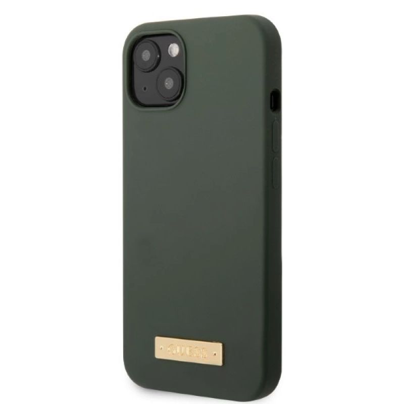 Etui Guess Silicone Logo Plate MagSafe na iPhone 13 - zielone