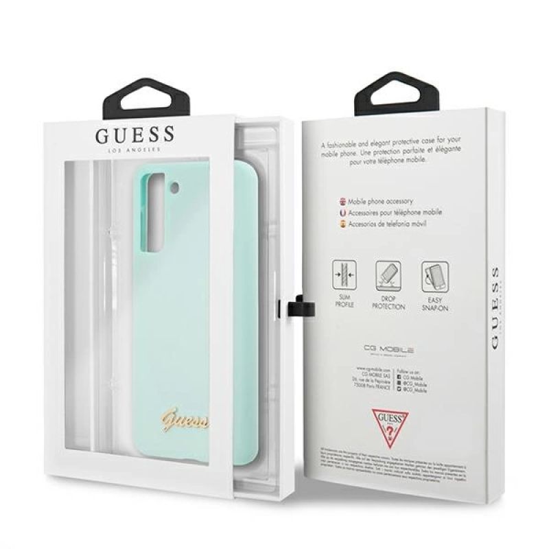 Etui Guess Silicone Script Metal Logo na Samsung Galaxy S21+ - niebieskie