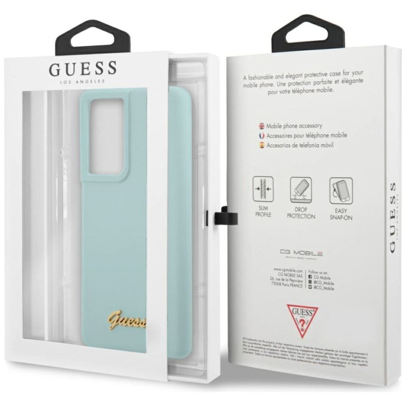 Etui Guess Silicone Script Metal Logo na Samsung Galaxy S21 Ultra - niebieskie