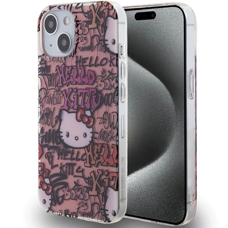 Etui Hello Kitty IML Tags Graffiti na iPhone 15 - różowe