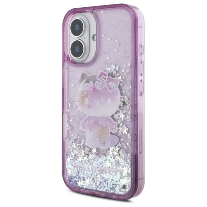 Etui Hello Kitty Liquid Glitter 50TH Anniversary Party na iPhone 16 - fioletowe