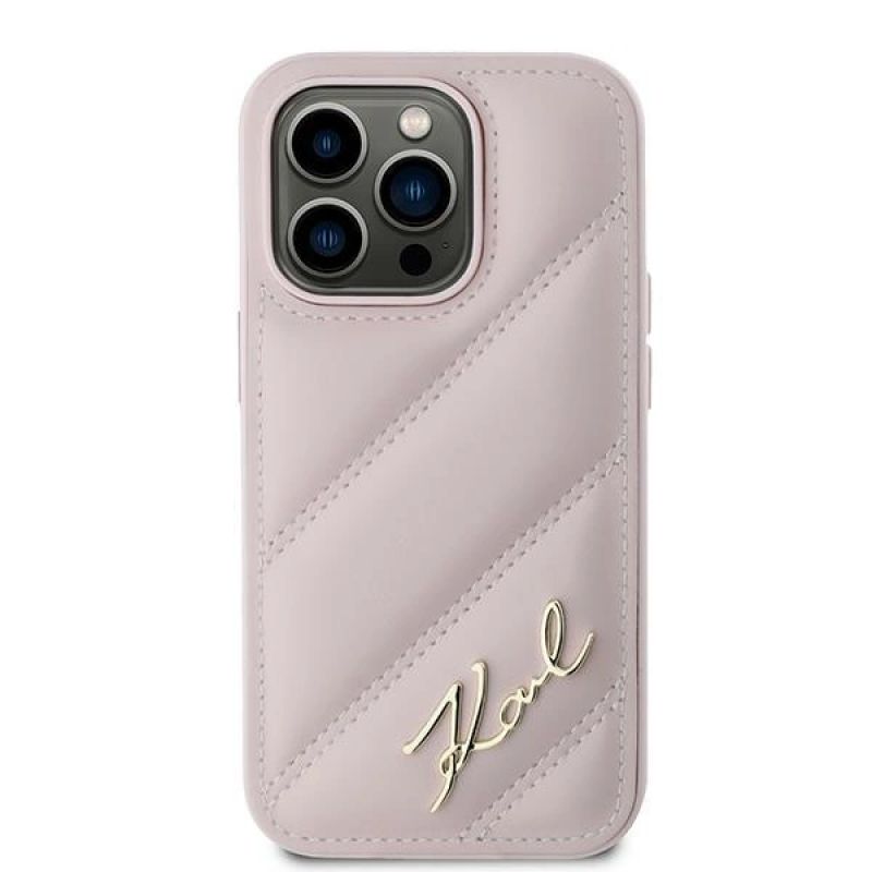 Etui Karl Lagerfeld Diagonal Quilted Script na iPhone 14 Pro - różowe