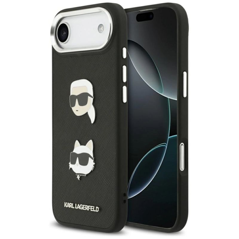 Etui Karl Lagerfeld FW Grained Karl & Choupette Heads Pins & Logo na iPhone Air - czarne