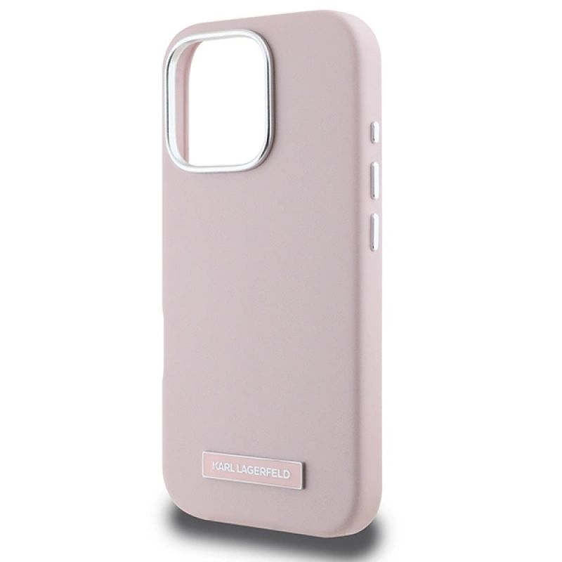 Etui Karl Lagerfeld FW Metal Plate MagSafe na iPhone 16 Pro - różowe