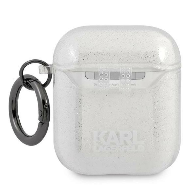 Etui Karl Lagerfeld Glitter Karl's Head na AirPods 1/2 - srebrne
