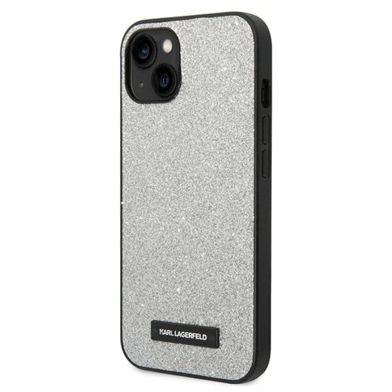 Etui Karl Lagerfeld Glitter Plaque Logo na iPhone 14 Plus - srebrne