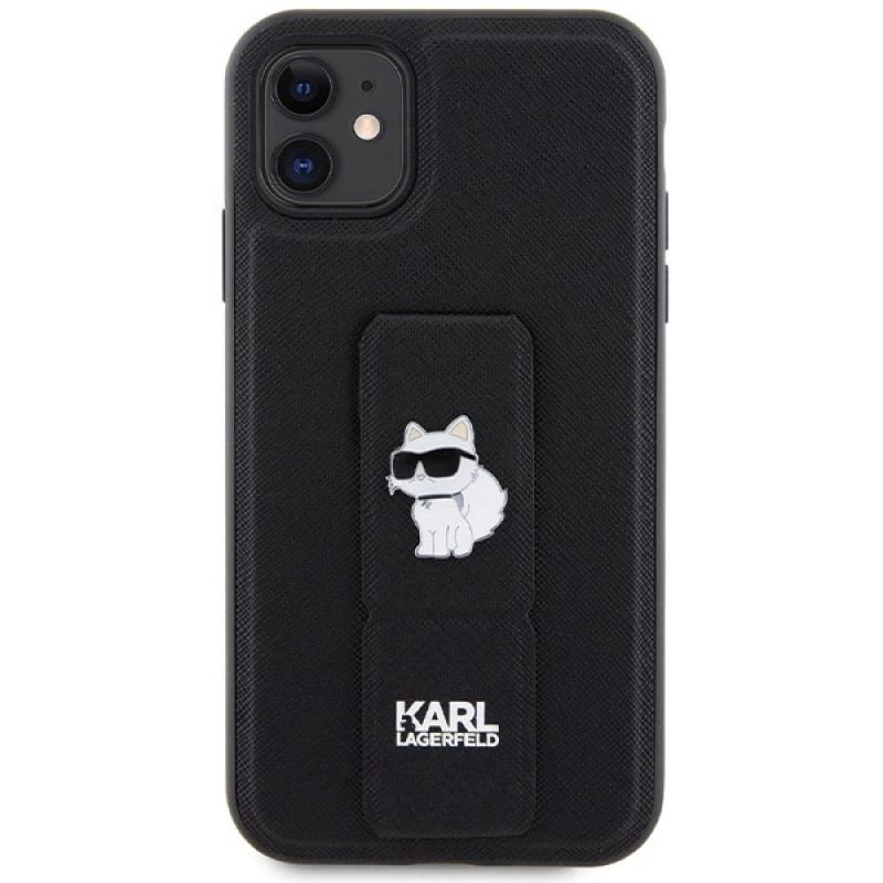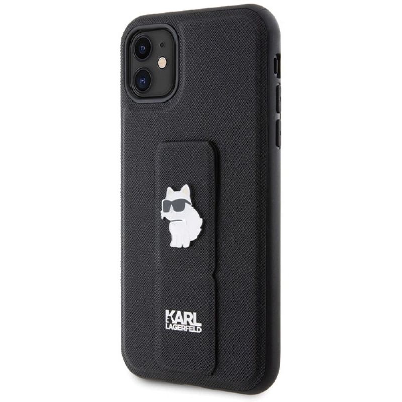Etui Karl Lagerfeld Gripstand Saffiano Choupette Pins na iPhone 11 / Xr - czarne