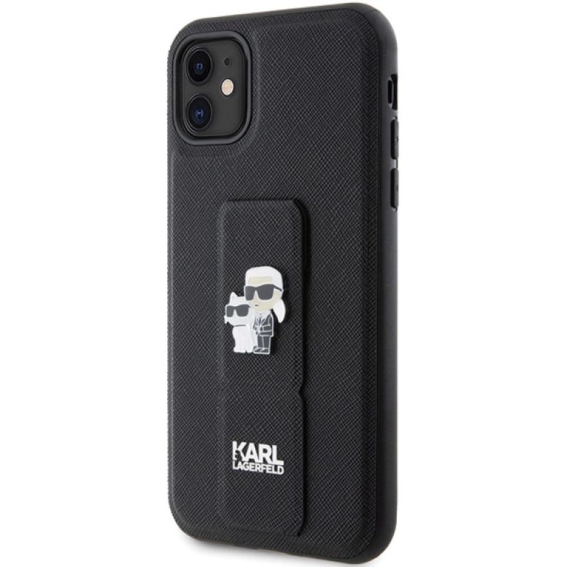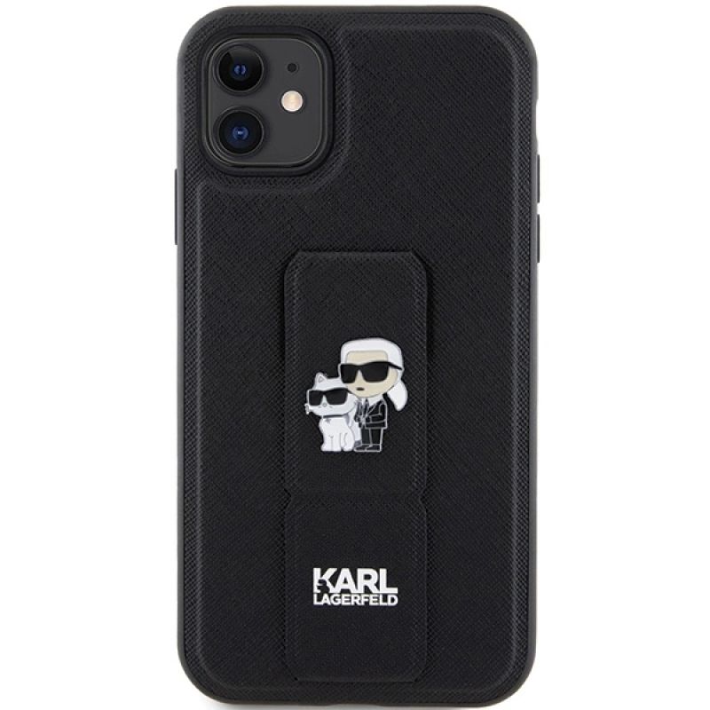 Etui Karl Lagerfeld Gripstand Saffiano Karl&Choupette Pins na iPhone 11 / Xr - czarne