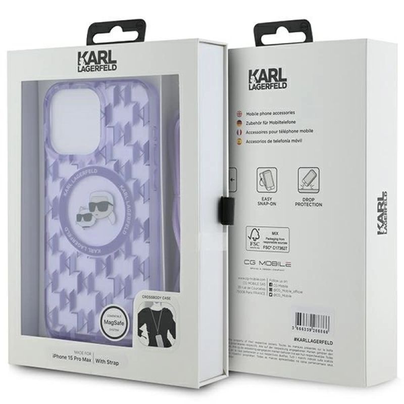 Etui Karl Lagerfeld IML Crossbody Monogram Karl & Choupette Head MagSafe na iPhone 15 Pro Max - fioletowe