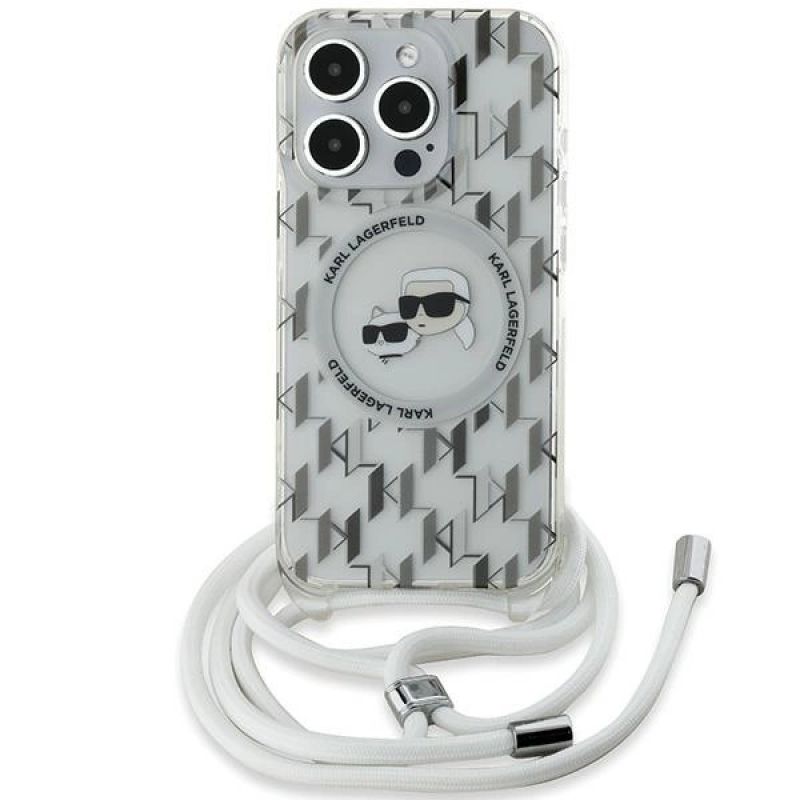 Te eleganckie etui typu hardcase przykuwa uwagę monogramem "KL" umieszczonym na całej jego powierzchni, które nadaje mu niezwykle designerskiego wyglądu. Wbudowany system MagSafe umożliwia łatwe i bezpieczne mocowanie etui do kompatybilnych akcesoriów, takich jak ładowarki, uchwyty samochodowe czy portfele. Dodatkowo, etui wyposażone jest w praktyczny sznurek, który umożliwia noszenie telefonu blisko siebie, pozostawiając ręce wolne.