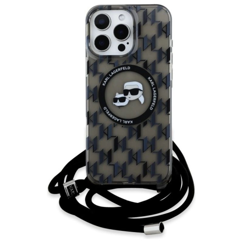 Etui Karl Lagerfeld IML Crossbody Monogram Karl & Choupette Head MagSafe na iPhone 16 Pro - czarne