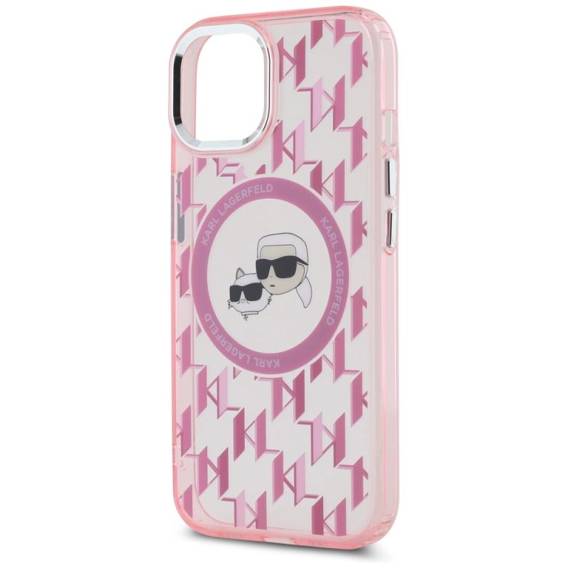 Etui Karl Lagerfeld IML Monogram Karl & Choupette Head MagSafe na iPhone 15 - różowe