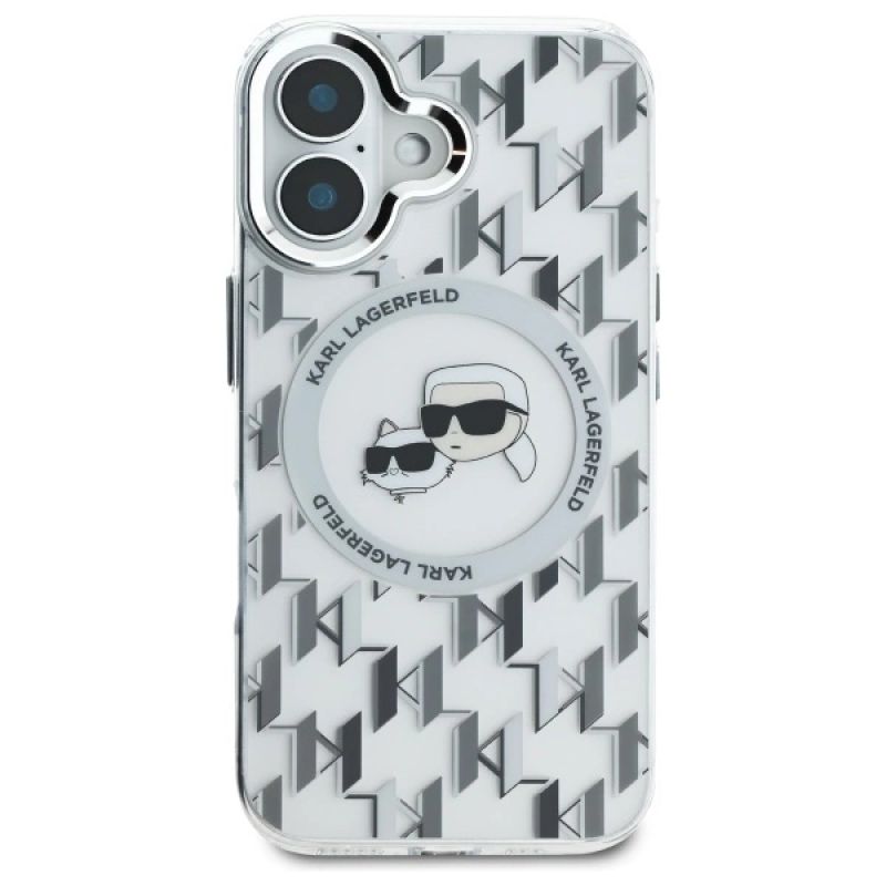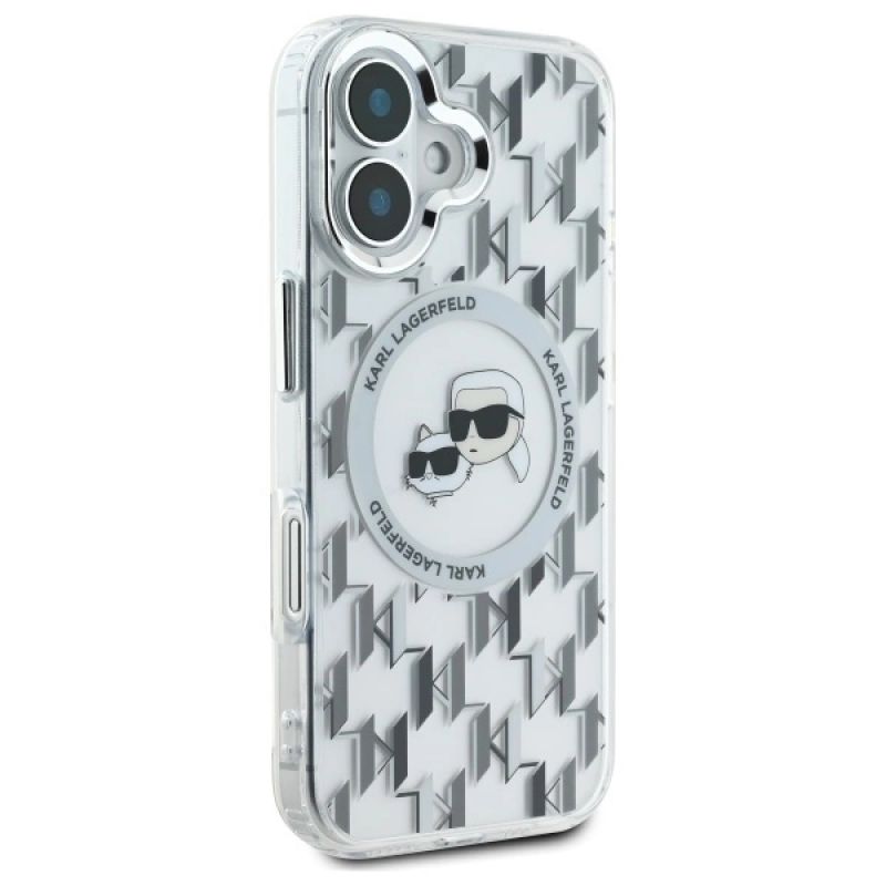 Etui Karl Lagerfeld IML Monogram Karl & Choupette Head MagSafe na iPhone 16 - przezroczyste