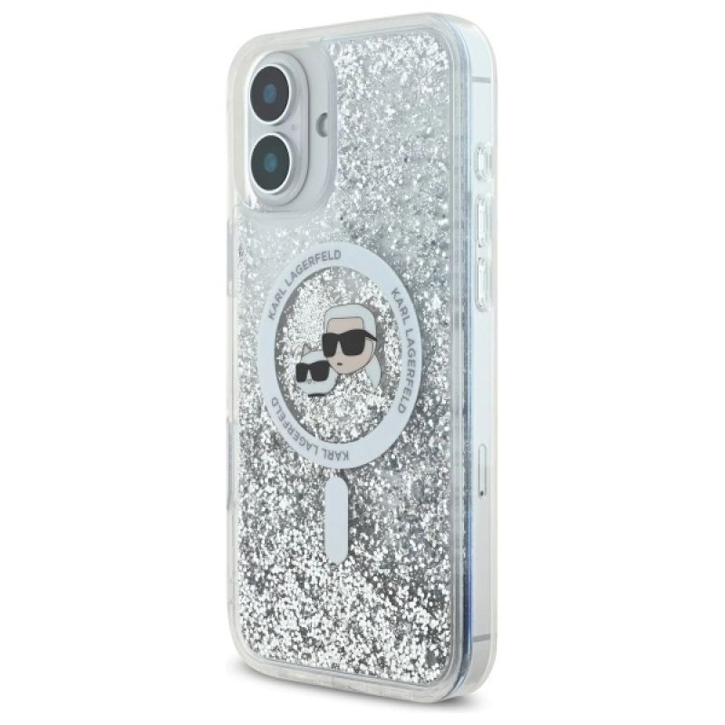 Etui Karl Lagerfeld Liquid Glitter Karl & Choupette Head Magsafe na iPhone 16 Plus - przezroczyste