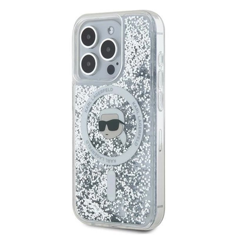 Etui Karl Lagerfeld Liquid Glitter Karl Head MagSafe na iPhone 15 Pro - przezroczyste