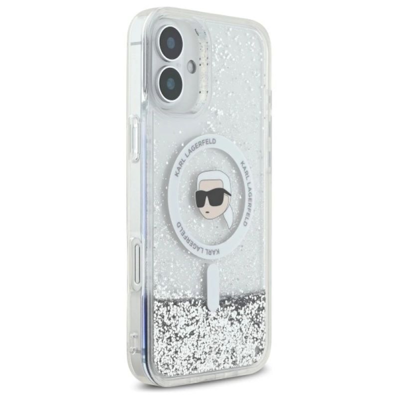 Etui Karl Lagerfeld Liquid Glitter Karl Head Magsafe na iPhone 16 Plus - przezroczyste