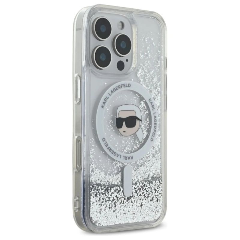 Etui Karl Lagerfeld Liquid Glitter Karl Head Magsafe na iPhone 16 Pro - przezroczyste