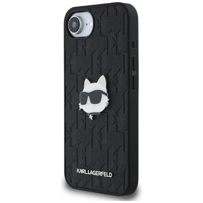 Etui Karl Lagerfeld Monogram Choupette Head Pin na iPhone 16e - czarne