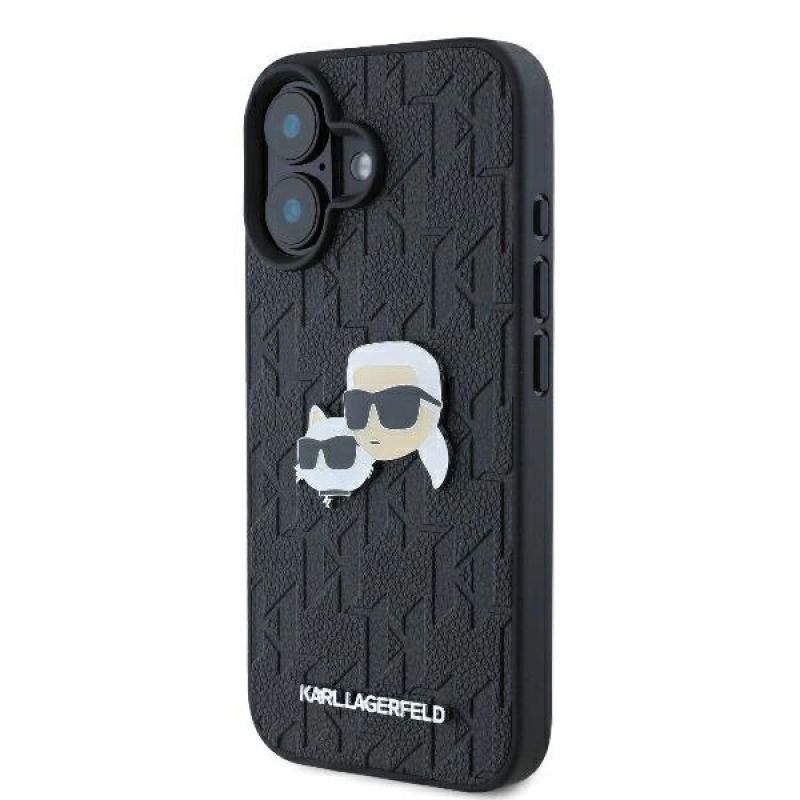Etui Karl Lagerfeld Monogram Karl & Choupette Head Pin na iPhone 16 - czarne