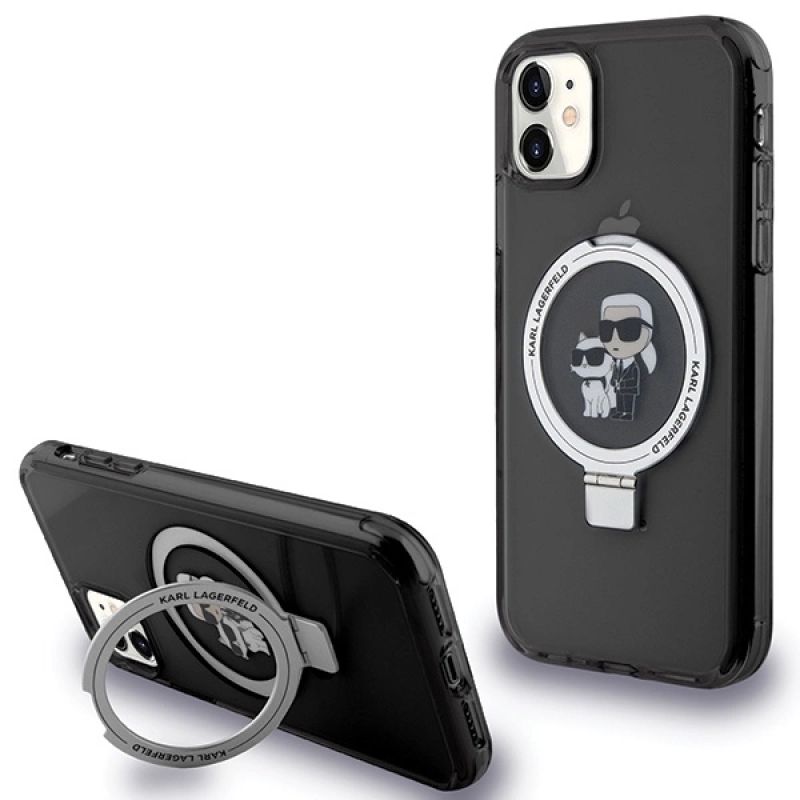 Etui Karl Lagerfeld Ring Stand Karl&Choupettte MagSafe na iPhone 11 / Xr - czarne