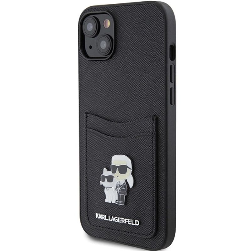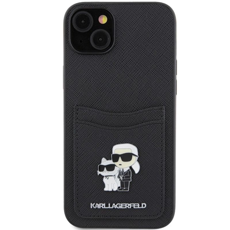 Etui Karl Lagerfeld Saffiano Cardslot Karl&Choupette Metal Pin do iPhone 15 - czarne