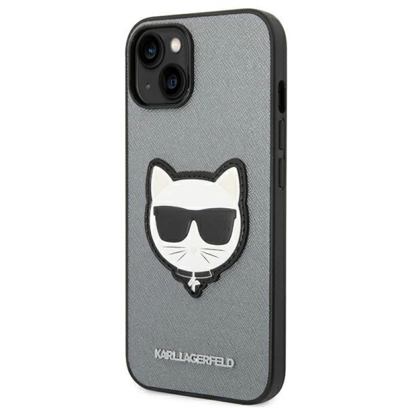 Etui Karl Lagerfeld Saffiano Choupette Head Patch na iPhone 14 Plus - srebrne