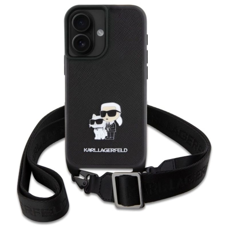 Etui Karl Lagerfeld Saffiano Karl&Choupette Metal Pin CBDY Strap na iPhone 16 - czarne