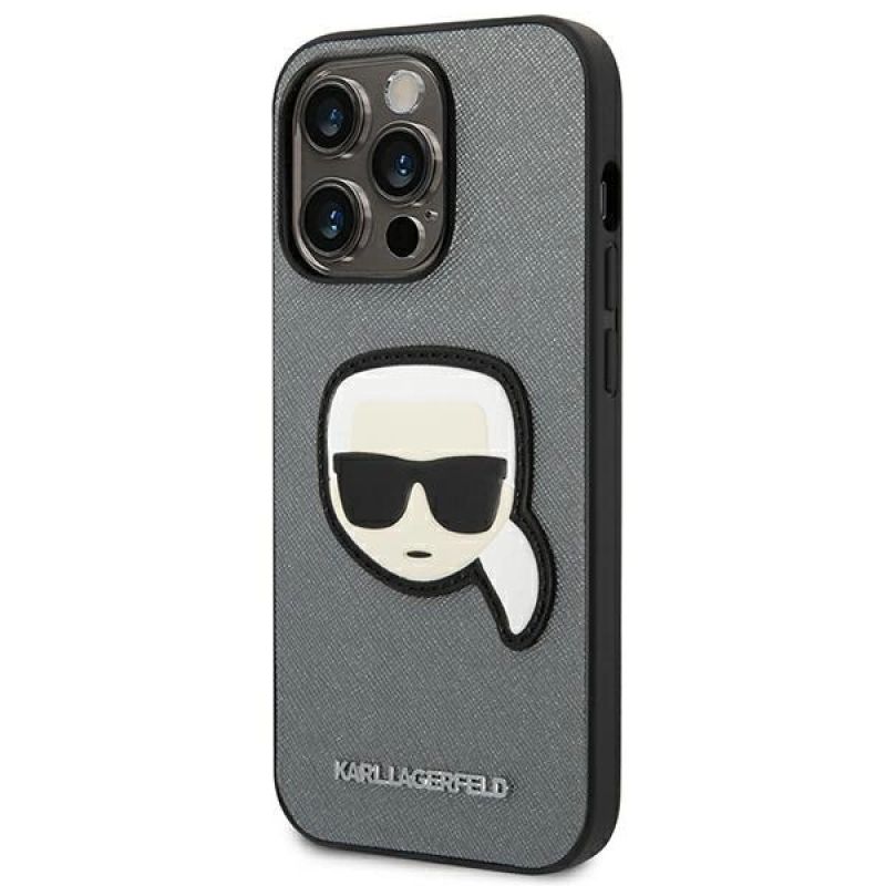 Etui Karl Lagerfeld Saffiano Karl's Head Patch na iPhone 14 Pro Max - srebrne