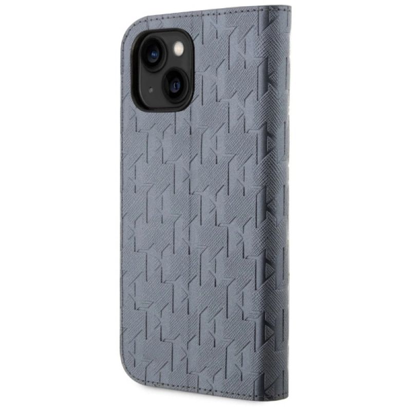 Etui Karl Lagerfeld Saffiano Monogram na iPhone 14 - srebrne