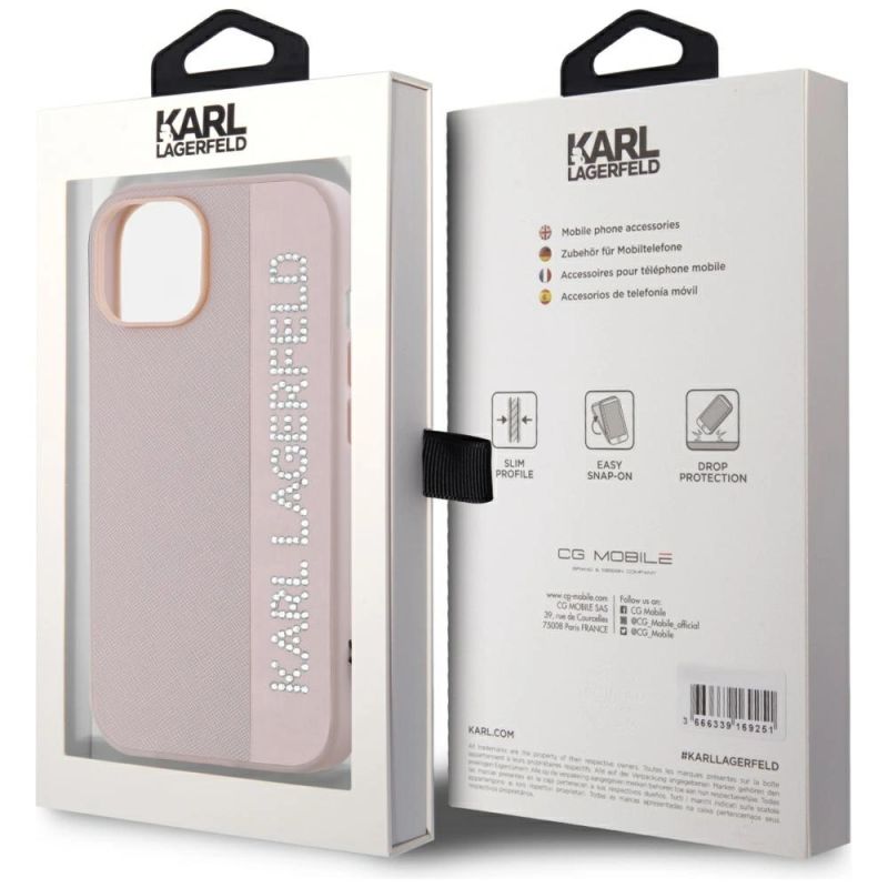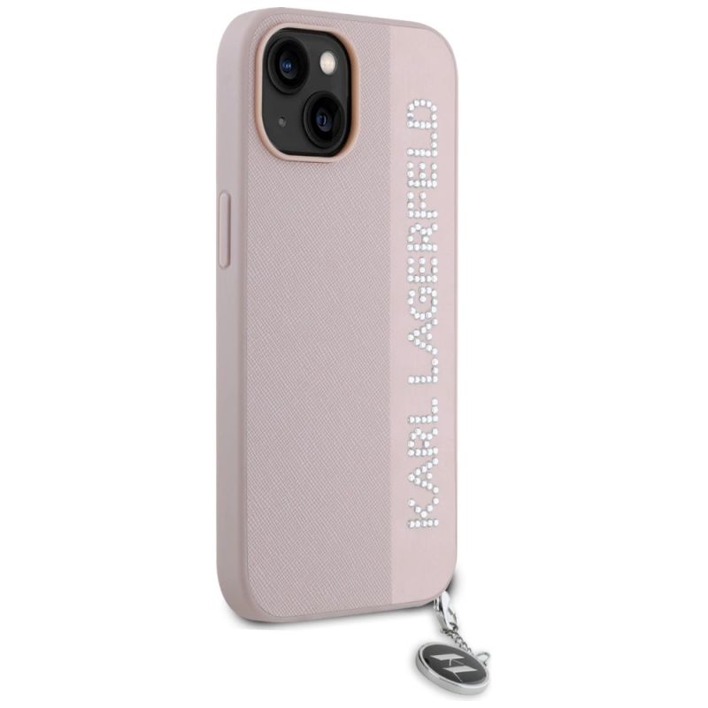 Etui Karl Lagerfeld Saffiano Rhinestones & Charm na iPhone 15 / 14 / 13 - różowe