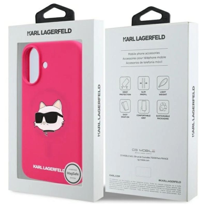 Etui Karl Lagerfeld Silicone Choupette Head Print MagSafe na iPhone 16 - fuksja