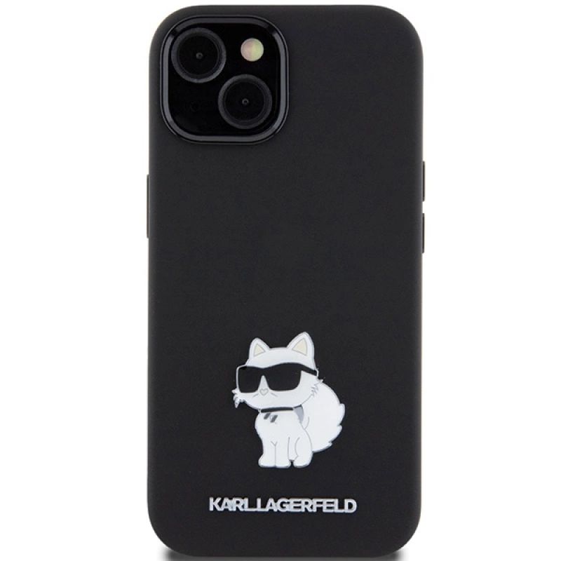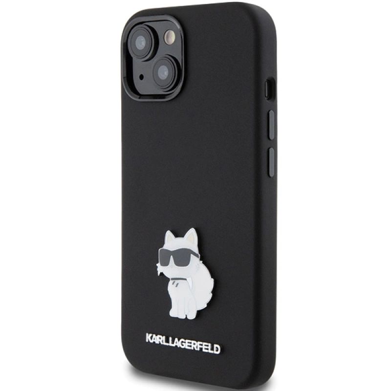 Etui Karl Lagerfeld Silicone Choupette Metal Pin na iPhone 15 Plus / 14 Plus - czarne