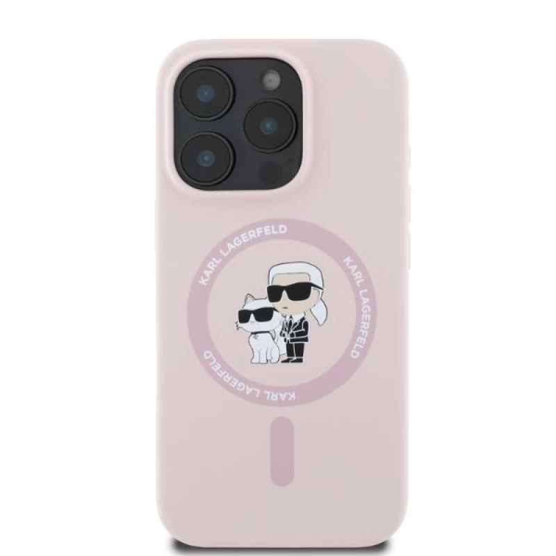 Etui Karl Lagerfeld Silicone Karl&Choupette Heads MagSafe na iPhone 16 Pro Max - różowe