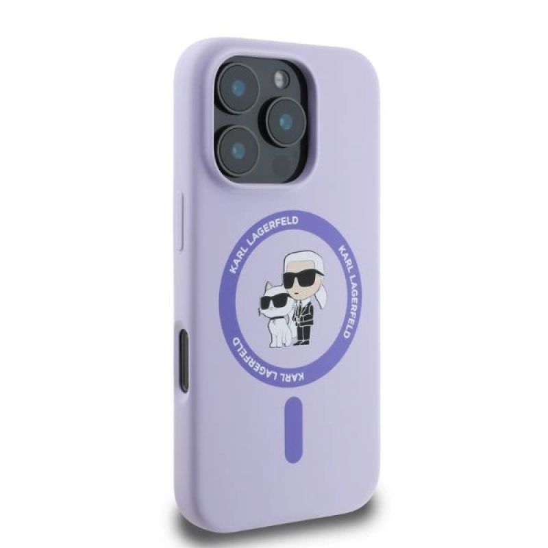 Etui Karl Lagerfeld Silicone Karl&Choupette Heads Ring MagSafe na iPhone 16 Pro Max - fioletowe