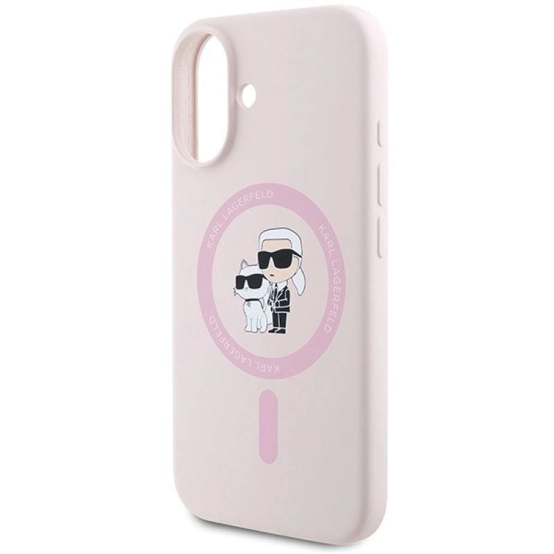 Etui Karl Lagerfeld Silicone Karl&Choupette Heads Ring MagSafe na iPhone 16 - różowe