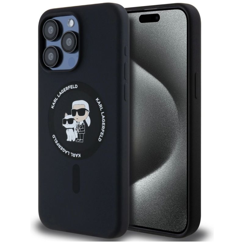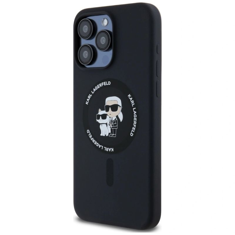 Etui Karl Lagerfeld Silicone Karl&Choupette Ring MagSafe na iPhone 15 Pro Max - czarne