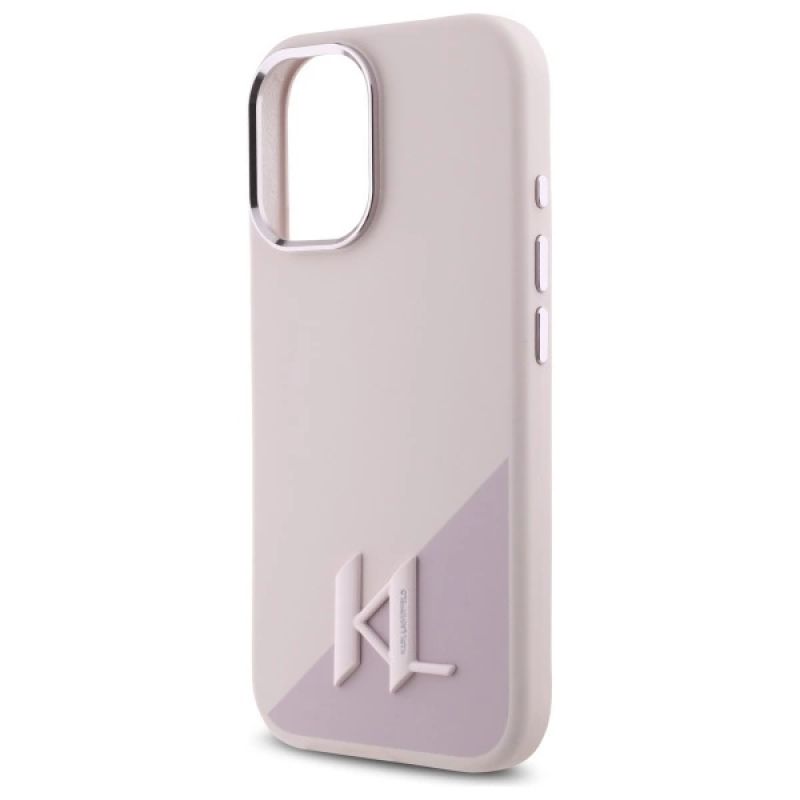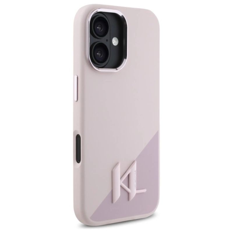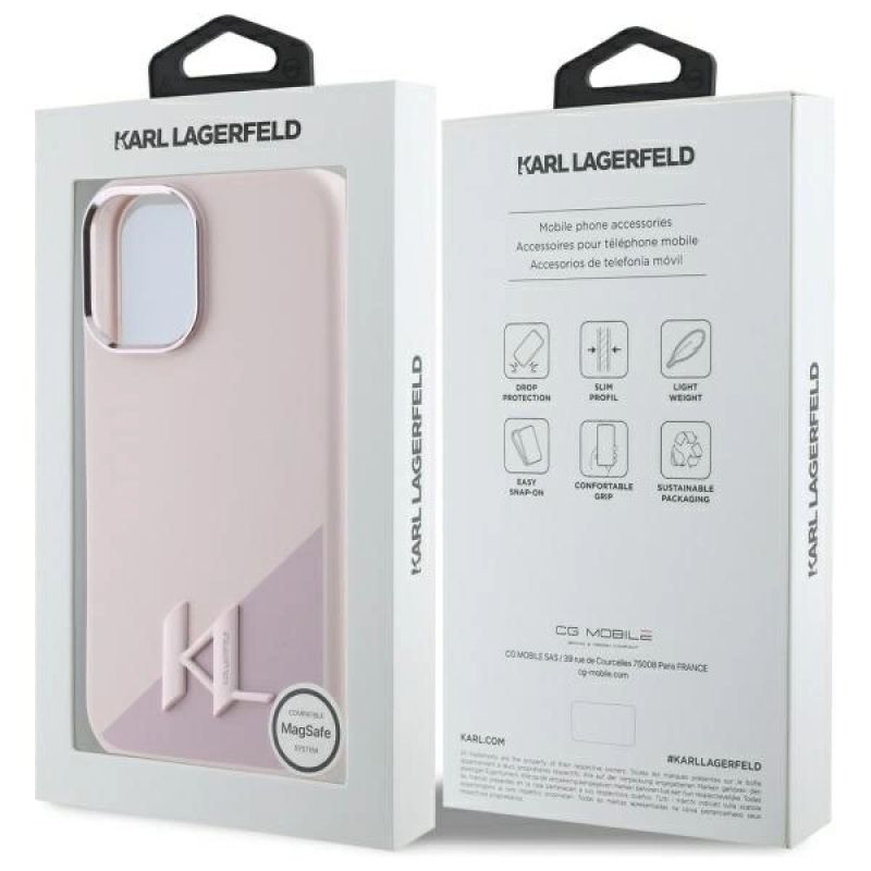 Etui Karl Lagerfeld Silicone Shadow Metal Initial MagSafe na iPhone 16 - różowe