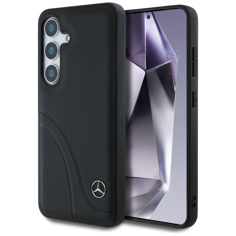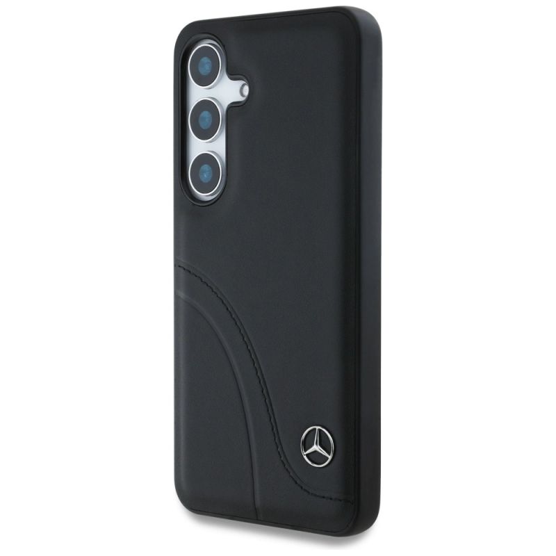 Etui Mercedes Leather Curved Stitches na Samsung Galaxy S25 - czarne