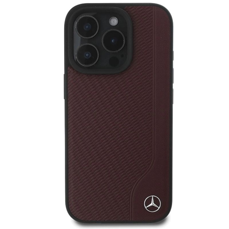 Etui Mercedes MB Wood Imitation Leather MagSafe na iPhone 16 Pro - czerwone
