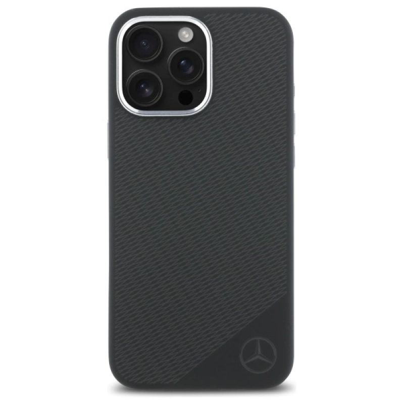 Etui Mercedes Silicone Tonal Logo Wood Pattern MagSafe na iPhone 16 Pro Max - czarne