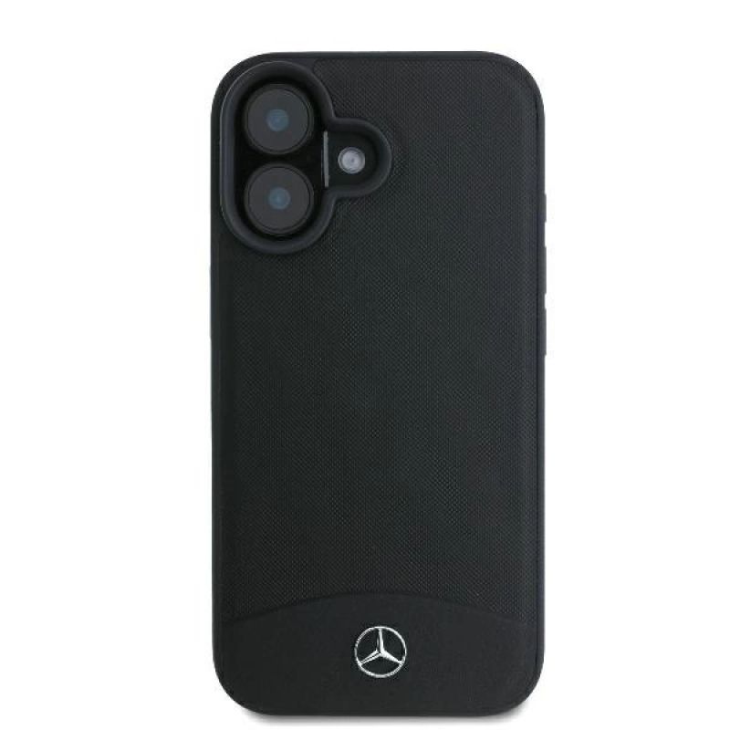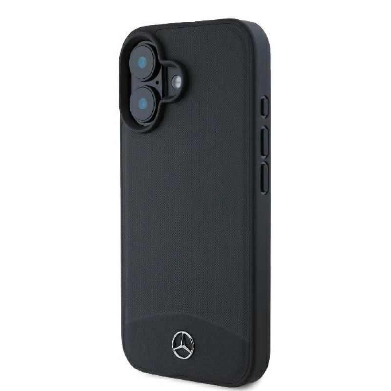 Etui Mercedes Textured And Plain Leather MagSafe na iPhone 16 - czarne