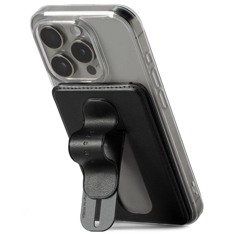 Posiada wbudowany pasek na palce, który wysuwa się jednym ruchem, zapewniając pewny chwyt i wygodę użytkowania. Dodatkowo pełni funkcję podstawki z regulowanym kątem nachylenia, co umożliwia komfortowe oglądanie treści na ekranie. Wykonany z wysokiej jakości materiałów, takich jak skóra PU i miękka wyściółka zamszowa, chroni przechowywane karty przed uszkodzeniem.