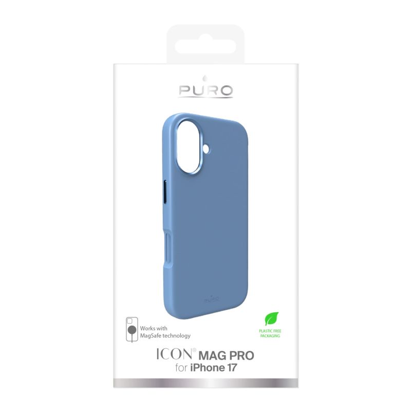 Etui silikonowe Puro Icon Mag Pro na iPhone 17 kompatybilne z MagSafe, z ochroną aparatu i aluminiowymi przyciskami - niebieskie