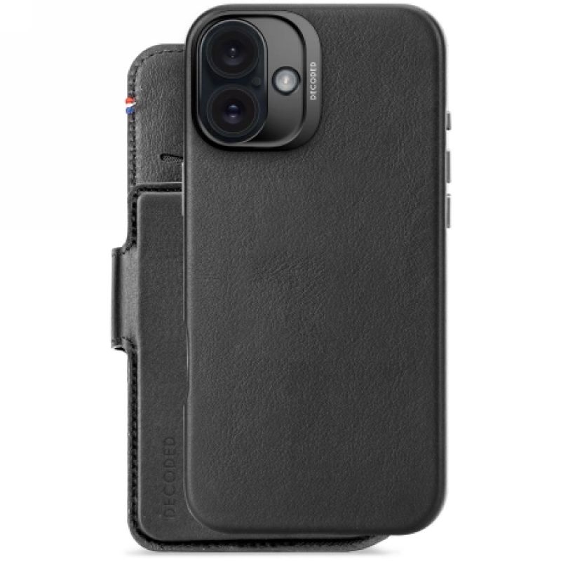 Etui skórzane Decoded Leather Detachable Wallet MagSafe z portfelem na iPhone 16 Plus - czarne