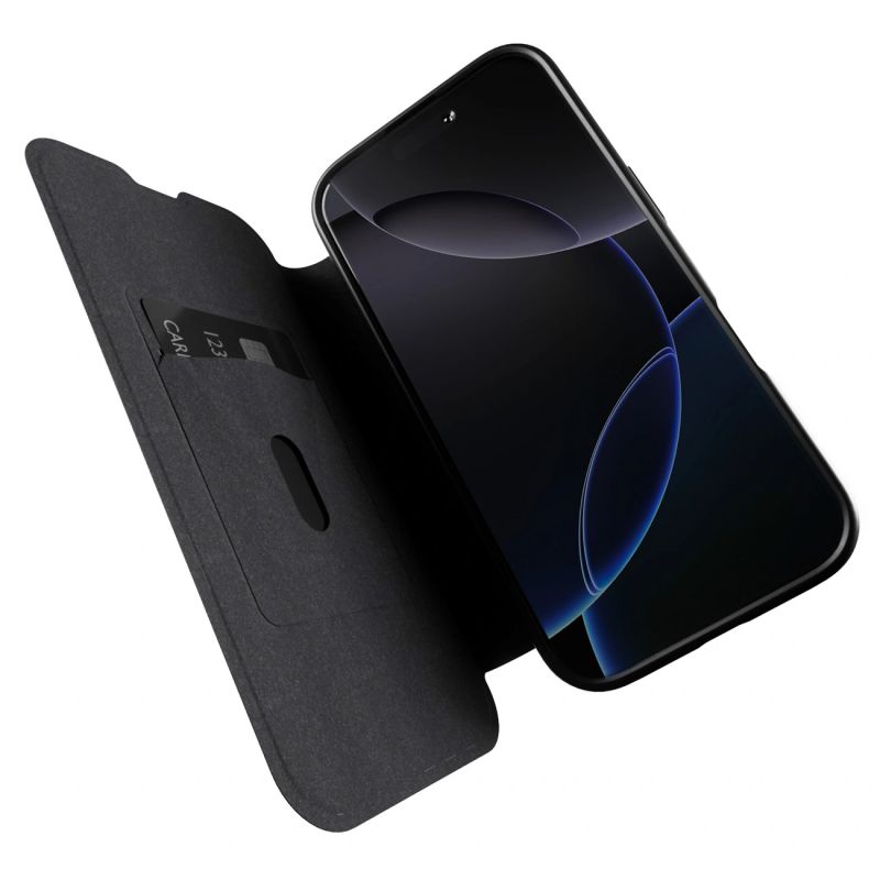 Etui skórzane Puro Book Mag MagSafe z klapką i schowkiem na karty do iPhone 16 Pro Max - czarne