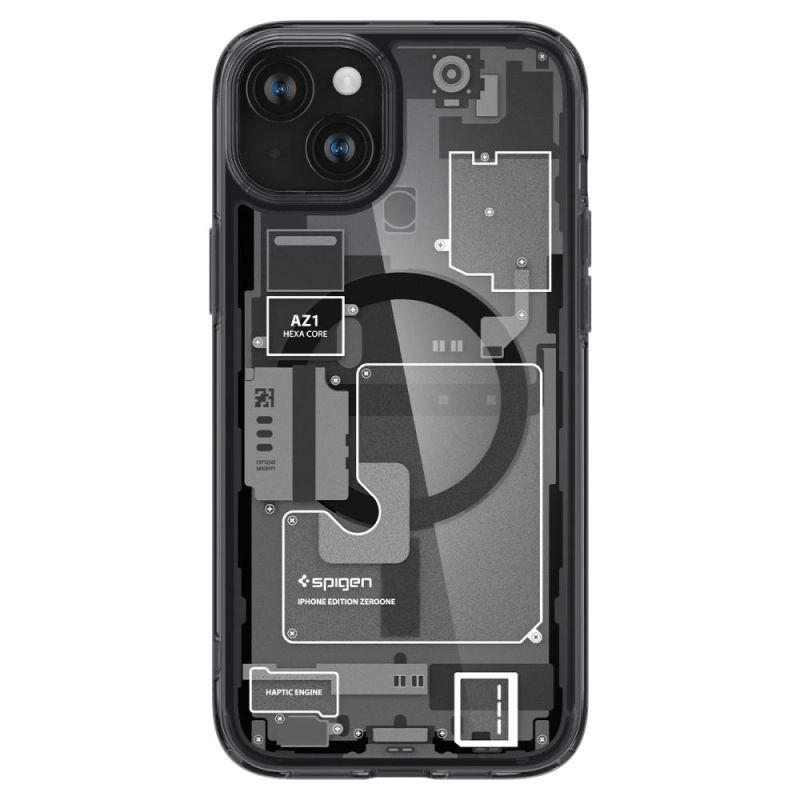 Etui Spigen Ultra Hybrid Mag z MagSafe na iPhone 15 Plus - ciemnoszare (wzór Zero One)