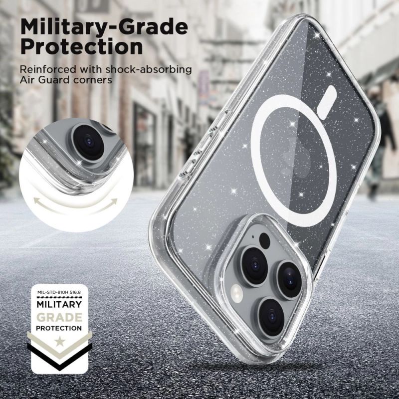 Wbudowany pierścień magnetyczny umożliwia bezprzewodowe ładowanie oraz stabilne połączenie z ładowarkami, uchwytami i portfelami MagSafe bez konieczności zdejmowania futerału. Magnesy trzymają się mocno akcesoriów, zapewniając pewne mocowanie w każdej sytuacji. Case idealnie dopasowuje się do urządzenia, zapewniając pełny dostęp do wszystkich portów zewnętrznych i funkcji. Elastyczny materiał gwarantuje pewny chwyt, minimalizując ryzyko przypadkowego upadku.