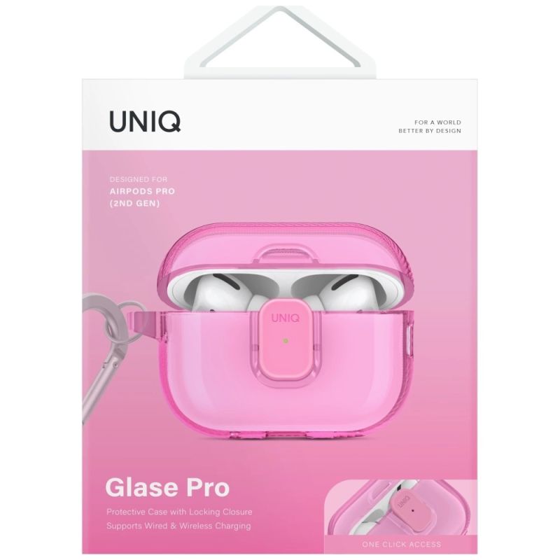Marka UNIQ Typ Etui UNIQ Glase Pro Lock Case Kolor Różowy Materiał TPU Kompatybilność AirPods Pro 2| Nazwa | Szczegóły |