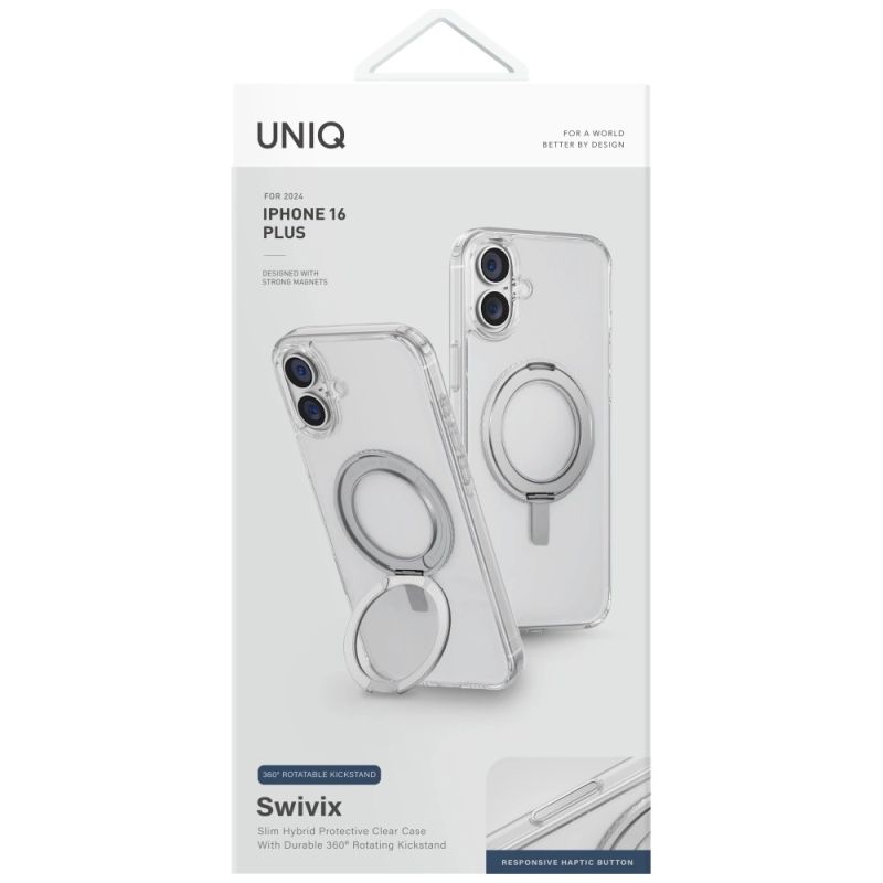Etui UNIQ Swivix 360 Rotating Kickstand na iPhone 16 Plus - przezroczyste