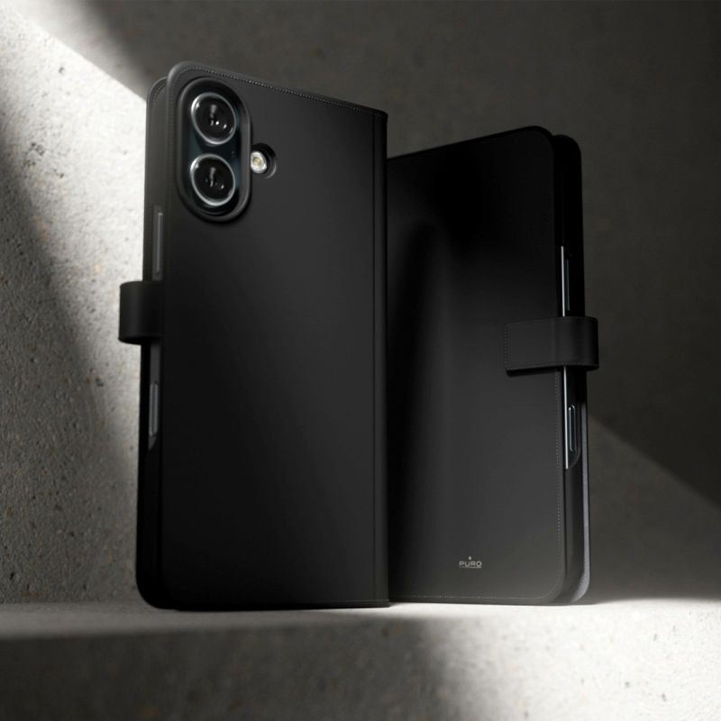 Etui z ekoskóry Puro Wallet Detachable MagSafe 2w1 z klapką i portfelem do iPhone 16 - czarne